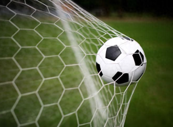 The moment when the football and the football net collide
