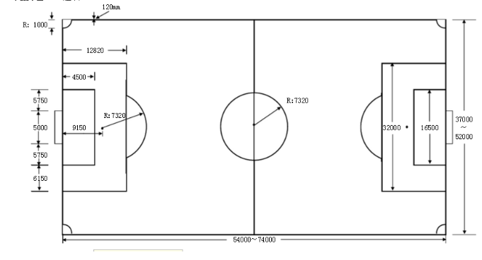 Large penalty area (penalty area): 40.32 meters long, 16.5 meters wide, 16.5 meters away from the goal post on the baseline