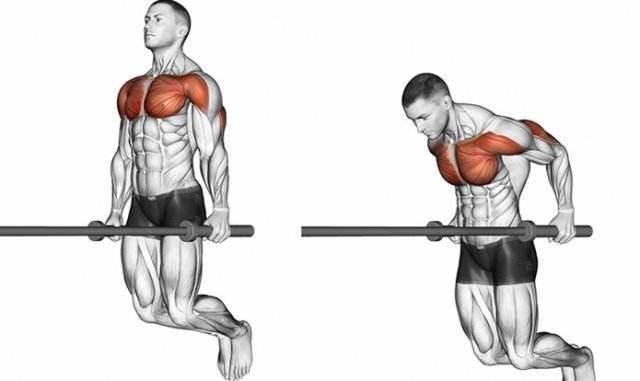 So if you choose between two movements to exercise the thrust muscle group, the efficiency of parallel bar arm flexion and extension will be higher!