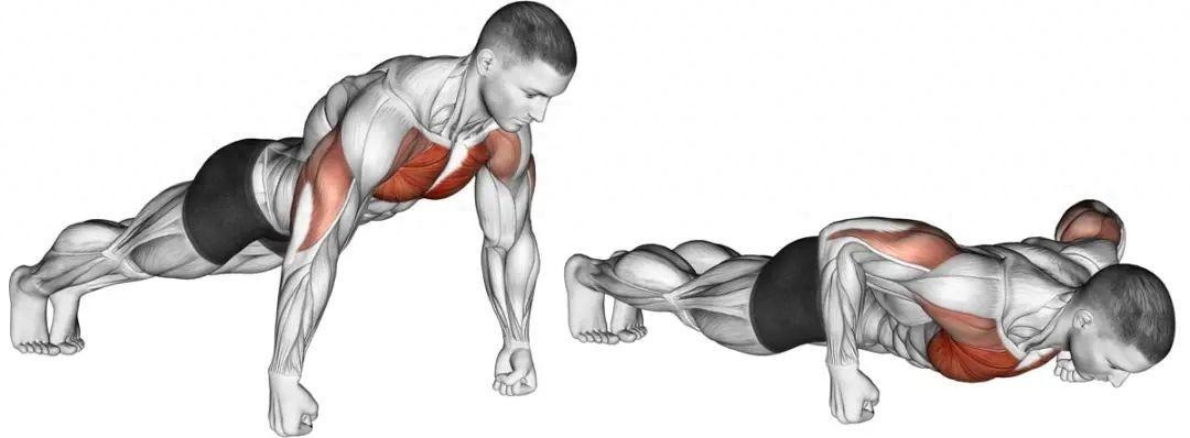 This movement mainly exercises the muscles of the chest, arms, and shoulders. At the same time, due to the fact that the practitioner's body is in a horizontal state throughout the entire movement, there are also certain requirements for the stability of the core muscle group. However, compared to parallel bar arm flexion and extension, push ups have relatively lower requirements for flexibility and coordination.